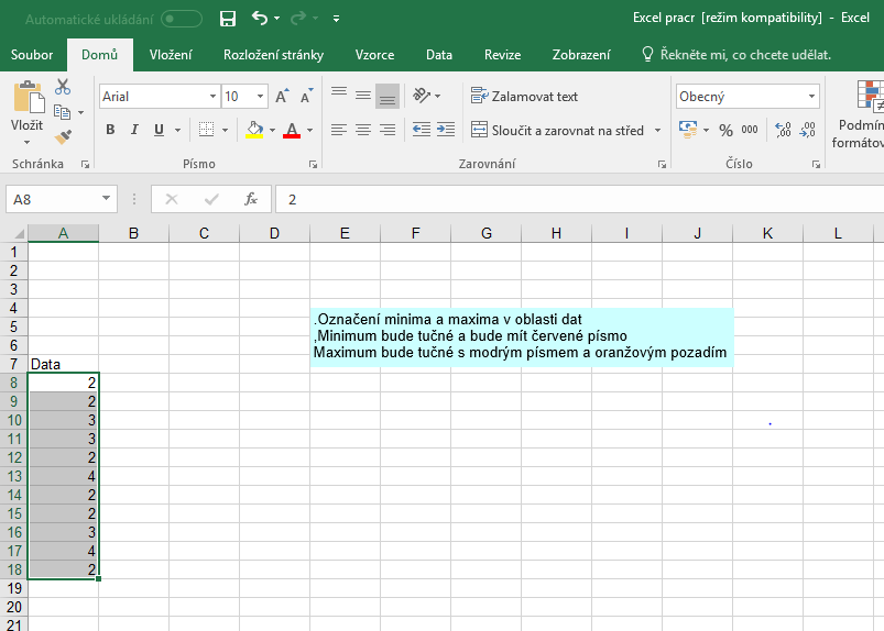 Excel - max a min hodnota - formátování
