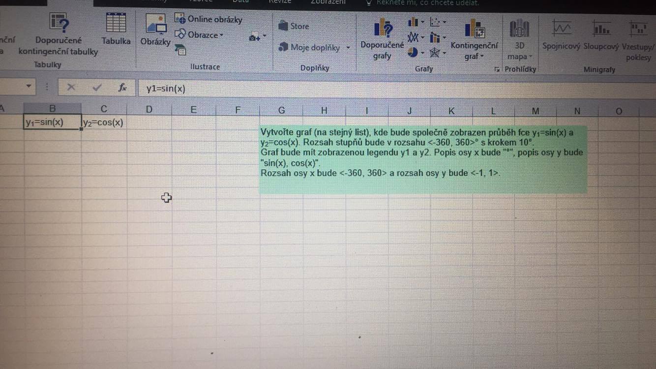 ZKoušel jsem napsat pomocí řad udělat čísla 360 až - 360 s krokem 10 následně z toho pomocí funkce sin udělat nějakou hodnotu menší jedné a udělat graf. Ale ovšem nevím, jestli je tenhle postup správný. Postupuji správně podle zadání? Jestli nevadí když zadávám hodnoty jen tak v číslech když to má být ve stupních.