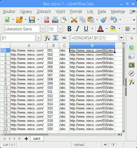 V něm je možné, například pomocí funkce CONCAT, spojovat textové řetězce do jednoho: