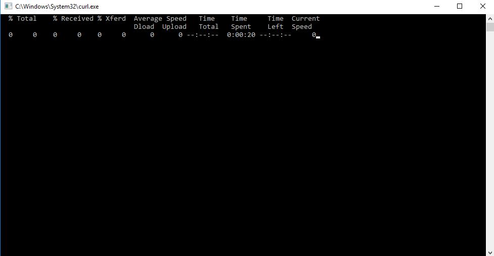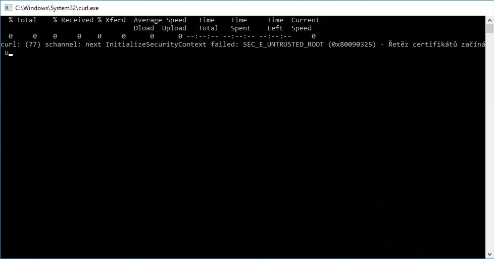 Curl příkazový řádek po zhruba 25 sekundách prostě zmizí. Zkoušel jsem se připojit na hotspot z mobilu a tam už to neodpočítává a hned vyhodí chybu a asi půl sekundy poté zmizí, ale i tak se mi podařilo udělat snímek obrazovky abych viděl alespň část chyby. Taktéž když zapnu curl.exe tak jen problikne okno s příkazovým řádkem a zase zmizí. Hádám, že to není normální... Nevíte co by to mohlo způsobovat? Vypnutí firewallu ničemu nepomohlo.