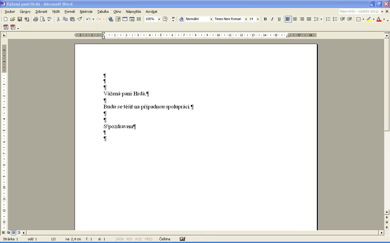 Ve wordu se mi objevily nějaká prapodivná znaménka viz příloha.Jsou to nějaké odstavce, ale nevím, jak to vypnout.Díky za případnou radu.