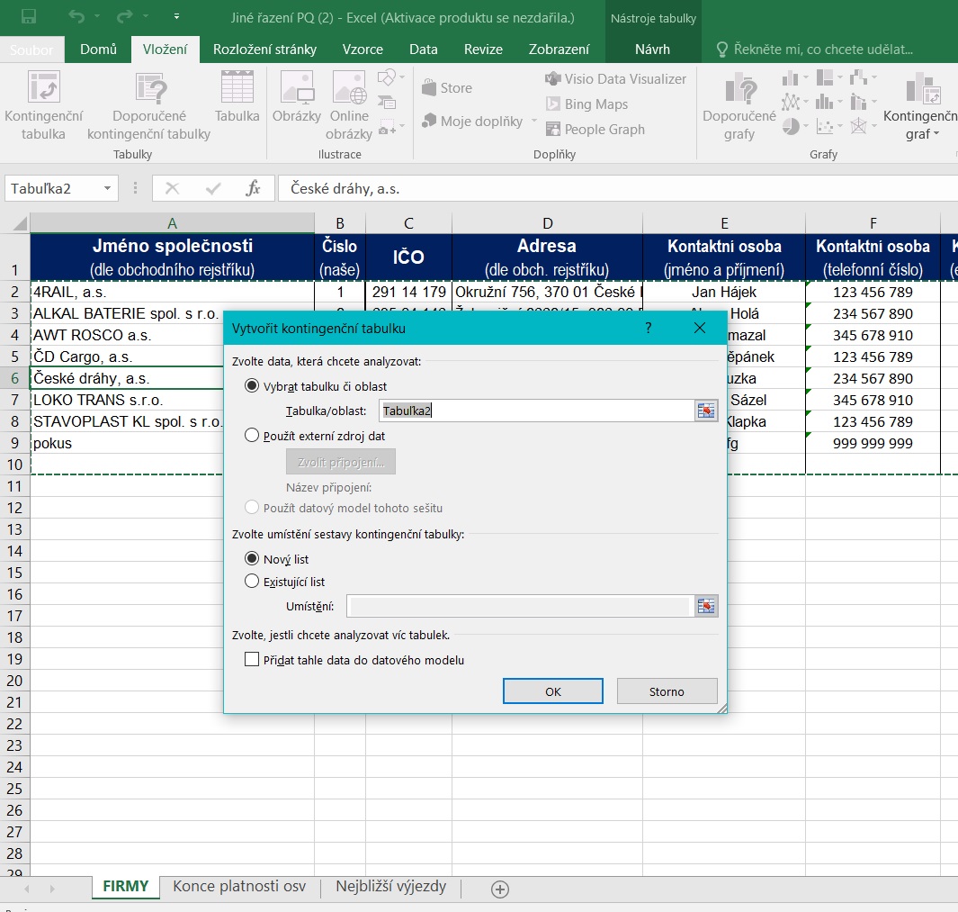 Klik do Tabuľky na liste FIRMY, potom menu "Návrh tabuľky", vidíte v poli "Názov tabuľky" hodnotu "Tabuľka2"? Nepremenoval to CZ Excel na "Tabulka2"?