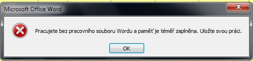 Bez jakého pracovního souboru ?? Paměť je zaplněna. A jaká? Operační? To není možný :-( Uložte svou práci ? To je vtip :smile: ? Jak jí můžu uložit když se word po kliknutí na OK restartuje :x