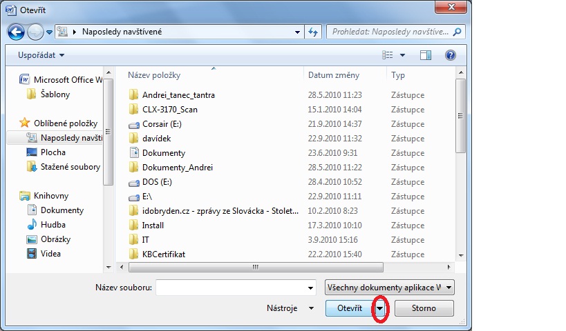 A na mém screenu máš zakroužkovanou tu roletku Otveřít, kde pod šipkou jsou další možnosti.