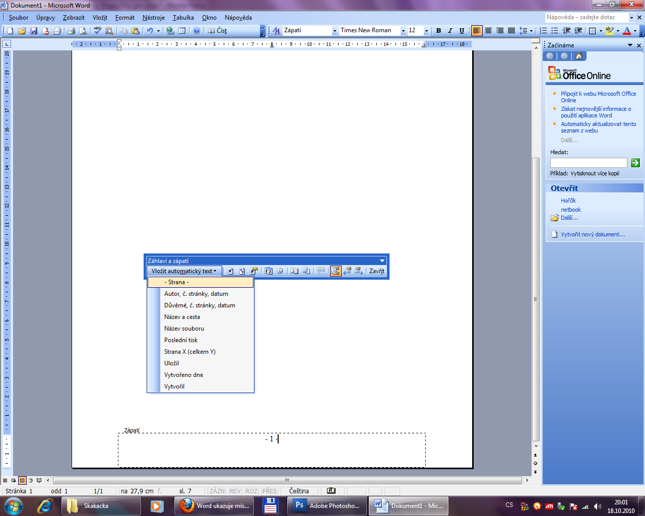 Zkus toto Zobrazit>Záhlaví zápatí(Office 2003).