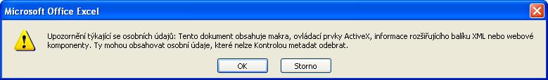 Excel 2007 hláška ochrana osobních údajů