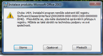 při odinstalování Office 2003 se objevila hláška s chybou Error 1404. Poradí někdo jaký je význam této hlášky a co s tím?