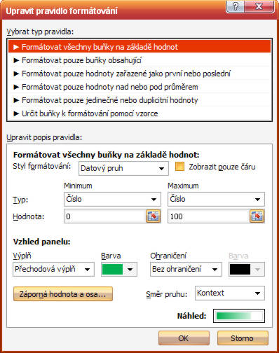 to podmíněné formátování tam nech jen jedno a nastav to podle obrázku (Políčko "Minimum" a "Maximum").