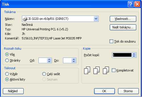 2. A pak zobrazit okno pro výběr tiskárny pro tisk