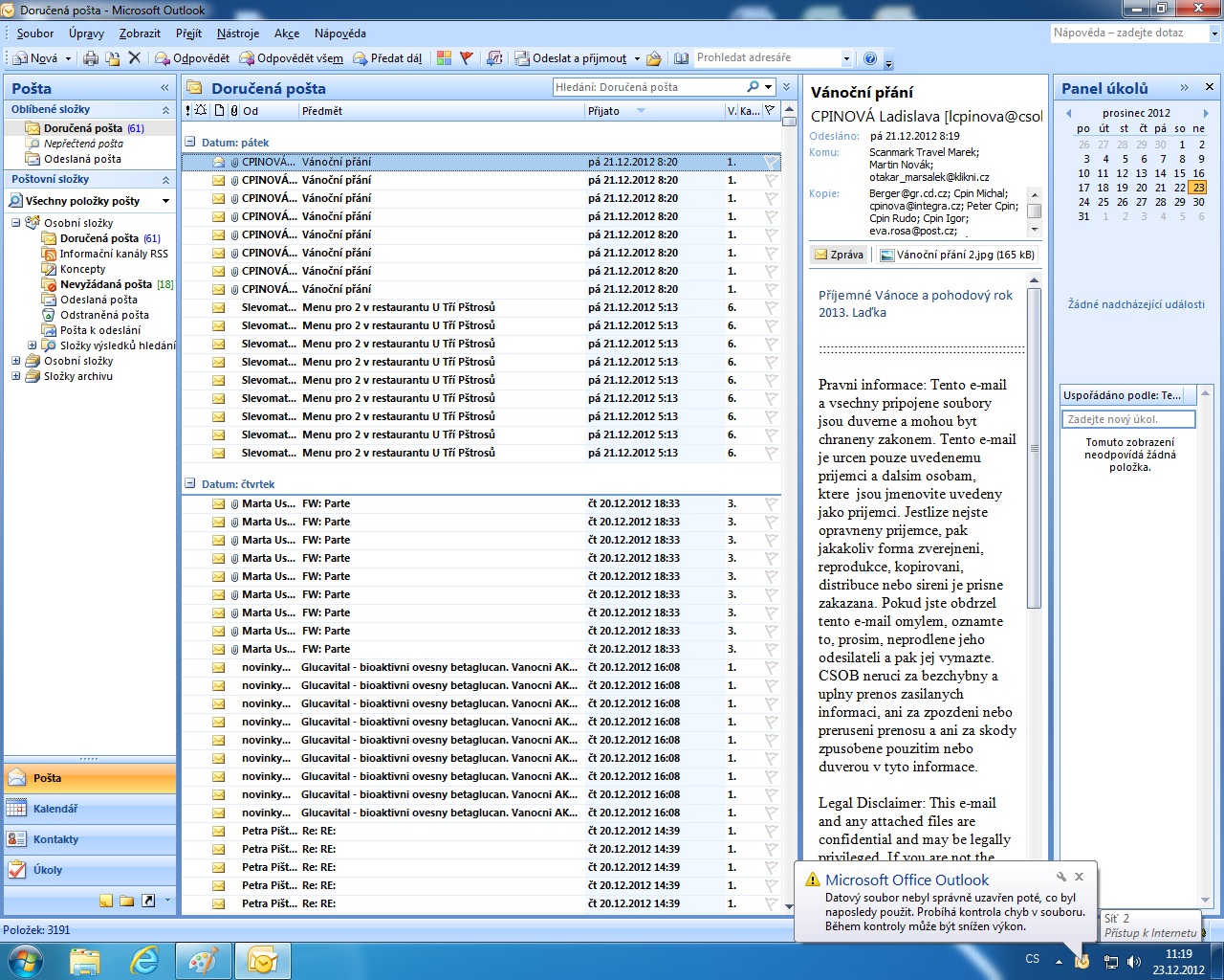 Outlook, padá, stahuje pořád maily  Vyřešeno