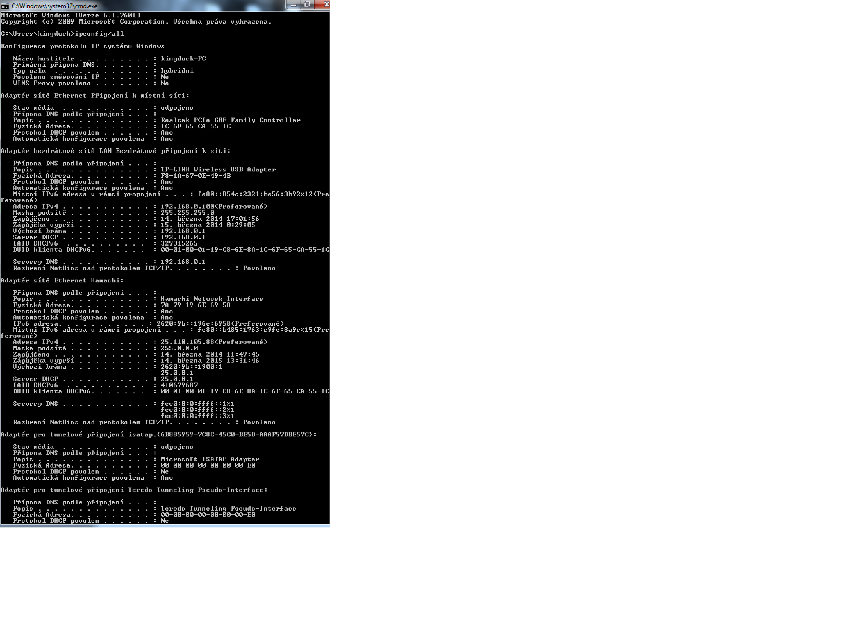 kdyz dám do příkazového řádku cmd následně pak ipconfig tak mi vyskočí