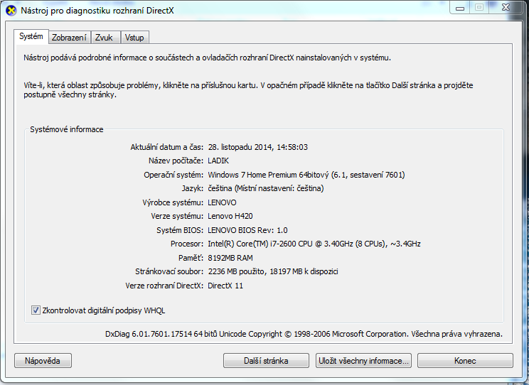 Direct X 11 mas nainstalovane take? Jaky je to operacni system?
