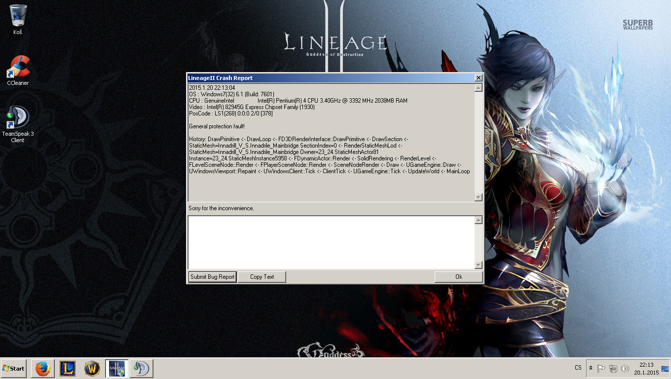Ano,mám shit počítač.Není to tím,že mám i zapnutý TS při Lineage 2 a že třeba moc ALT-TABUJU ?