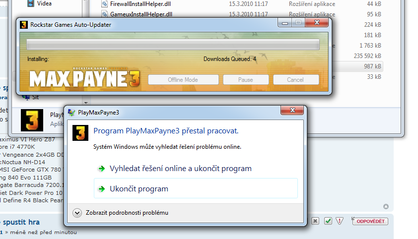 Zdravím kupoval jsem hru Max payene 3 a po spuštění mi hra furt hází že program přestal pracovat