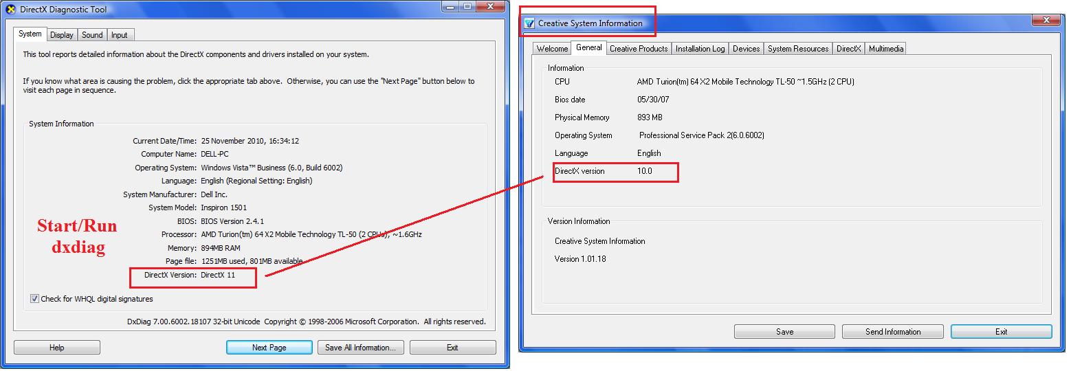 Ja si to myslel - nevim cim to je, ale dxdiag VZDY napise nejvyssi versi, tedy DX 11, kterou (asi) 100% nemas. Mas moznost zkusit jiny program ke zjisteni verze DX ?