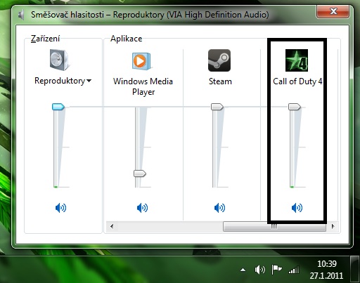 2. zapni hru (CoD2MP) vrať se do windowsu a do směšovače. Tam najdeš ikonu CoD2 a koukni, jestli je zvuk nahlas.