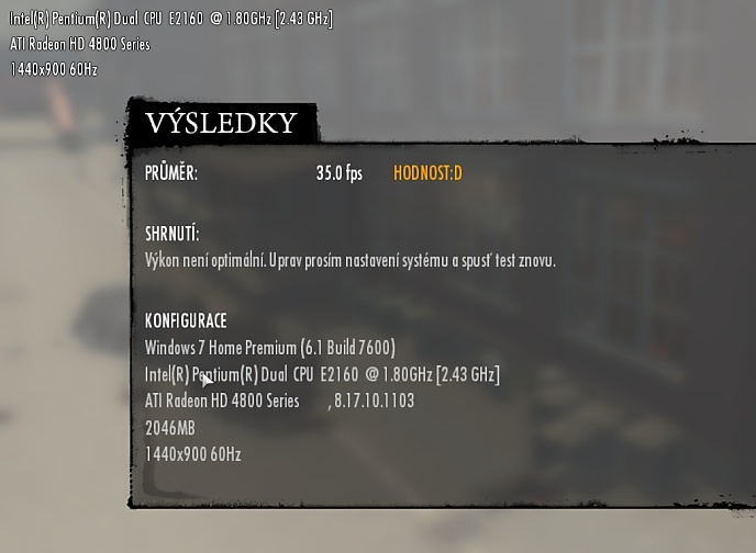 Na základním taktu je vcelku slabý i když je to dvoujádro odvozené z Core2Duo.Měl jsem doma před měsícem skoro ten samý typ (E2160)a šel velmi lehce přetaktovat na 2,4Ghz i s boxovaným chladičem a to už podával slušný výkon.Kdy stíhal i hru Mafia II.Viz příloha.Takže po přetaktování nevidím zas takový problém.