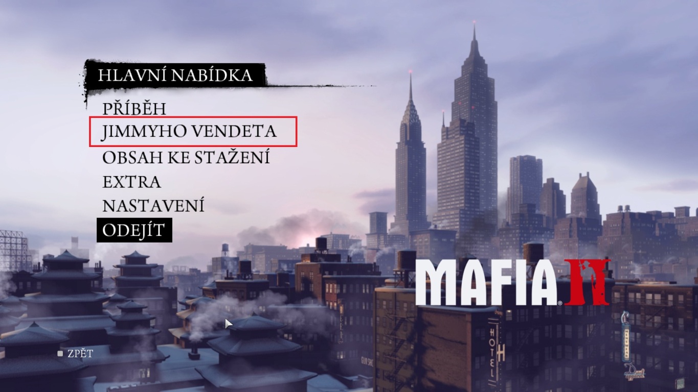 tak jimmyho vendetu bych popsal asi takto : 30 vedlejších misí pro Vita , ktere ovsem dela nejaky plešoun .... male a porad se opakujici ukoly ... zabij , ukradni , prodej .... animace zadne ,pouze prvni uvodni .... volná jízda jako v GTA (pro ukoly si jezdite po meste) 3 savehousy , stridajici se pocasi a den s nocí , bodování ,a vse ostatni co je v pribehu (hospody,obchody,tuning) .. cena : 7,99 euro (kdyby to byly vedlejší mise pro Vita v hlavním pribehu , bylo by to super ....