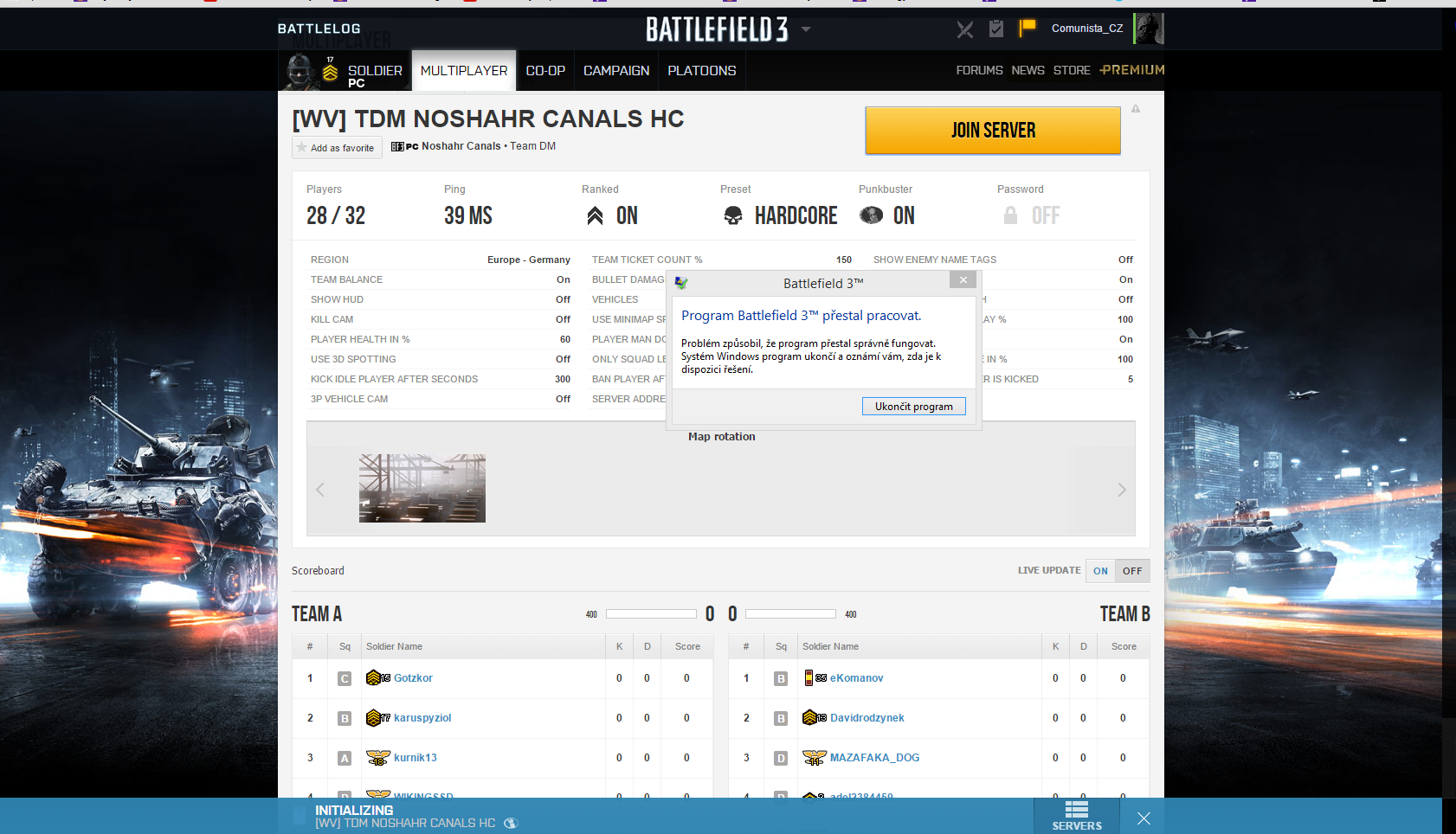 8: Now you can join a server. Battlefield 3 will notice that the file is missing and make a replacement file, this file will be using correct data and your problem should now be resolved.