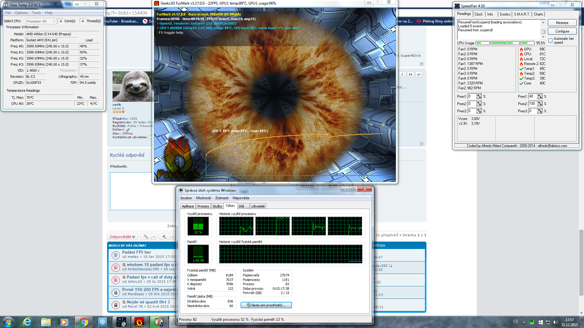 video je soukromé, jinak tohle vypadá spíš na procesor, 70°C v klidu (když běží furmark, tak procesor skoro nic nedělá) je moc...