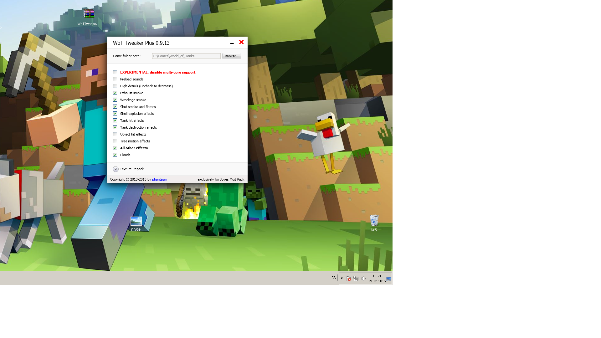 Problém bohužel přetrvává. První bitvu bylo vše OK, nastalo to až ve druhé bitvě. Ještě jsem zapomněl dodat, abych to mohl hrát, používám program WoT Tweaker. Kouř jsem nevypínal, ale i přesto to dělá. Používal jsem ho i dřív, a takový problém jsem neměl.