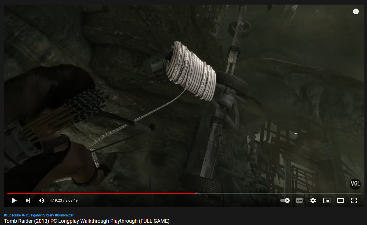 Došli jsme až sem a možnost měnit šípy jsme samozřejmě museli využít několikrát. Při stisknutí "zaměřit a +" střílí zapálené šípy a jinak střílela obyčejné. Když po zaměření zčervenal zaměřovač tak šíp letěl s lanem. Jinou možnost jsem do teď neměl. Řekl bych, že tím to nebude.