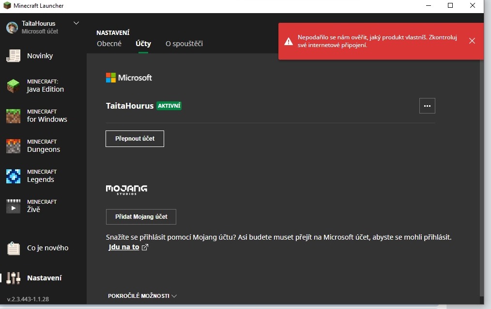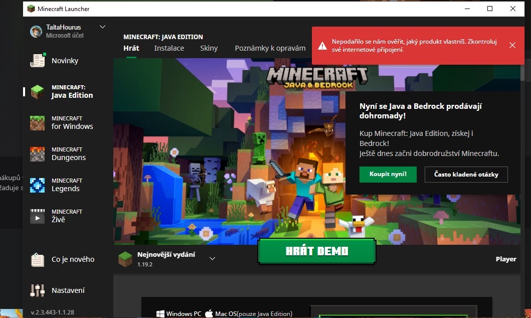 píše nemůžeme ověřit jaký hry vlastníte .. zkontrojte připojení!