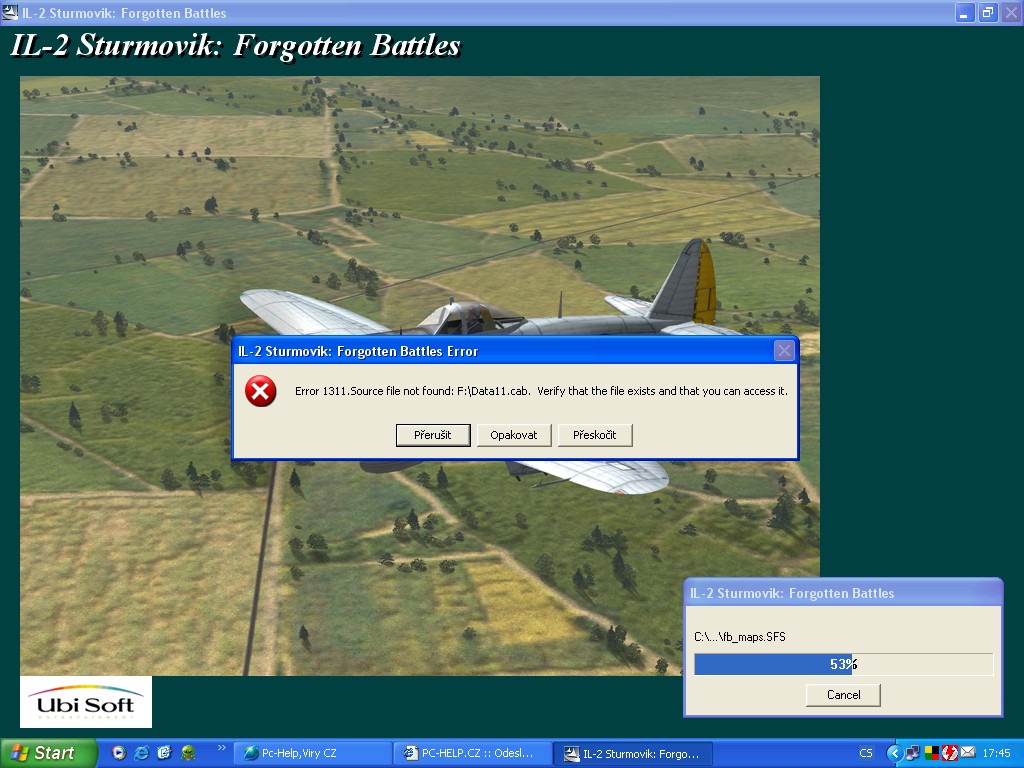 Ahoj,mohl by mi někdo poradit?když chci nainstalovat il-2 sturmovik forgotten battles tak mi to vyhodí toto:viz obrázek.nejdřív to jde instnout ale když vložím 2.cd při instalování tak to vyhodí tabulku(na obrázku)