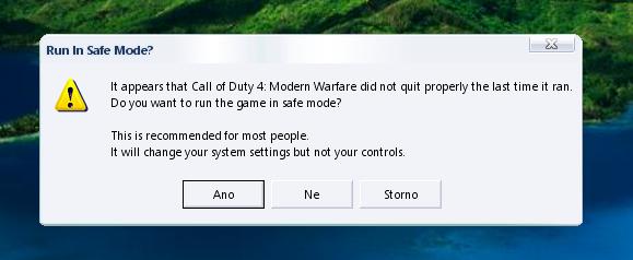 jinak co to udělá když dáš Ano a když dáš Ne? tuhle hlášku to vyhazuje uplně normálně,obvykle když to nějak nečekaně vypneš,špatně se to uloží a podobně,dělá to u spousty her ae u Call of Duty to dělá ve všech sériích...povede se ti teda hru nějak spustit?