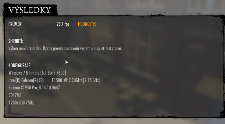 Mám notebook MSI GX620X a ačkoliv jsem se bál, zdali mu tuto parádní hru dovolí hrát, tak již se neobávám. Hraju hru na cca 29 FPS, což je myslím že dobré. Grafika mám vše sice na nízké, ale dobrý rozlišení. Zážitek ze hry mi to nekazí, i když na bratrovém PC to vypadá o dost lépe, ale i tak si hru úžívám.