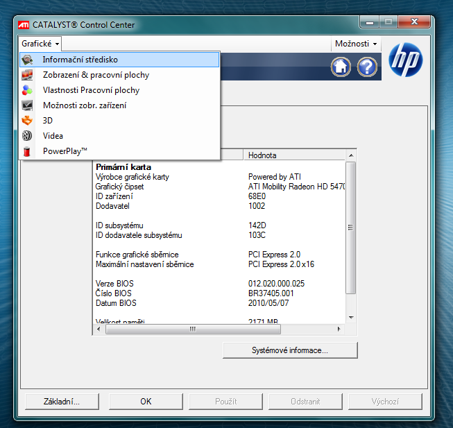 Spíše kliknout o jedno políčko dolu, nevím jaké máte verze ovladačů, ale já jsem jaksi po reinstallu, takže zatím jsem nedořešil update ještě ...