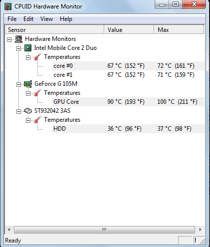 Temperature sensor 0	72°C (161°F) [0x21] (core #0)