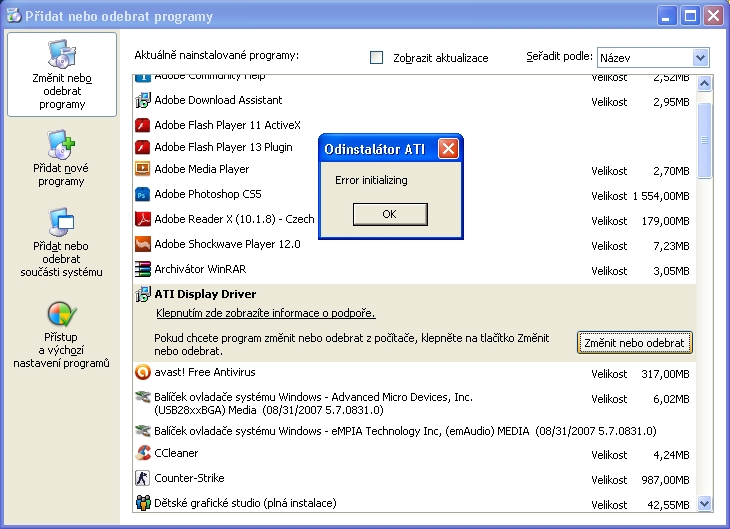 Tak jsem odinstaloval všechno v tom PŘidat nebo odebrat prograMY ..