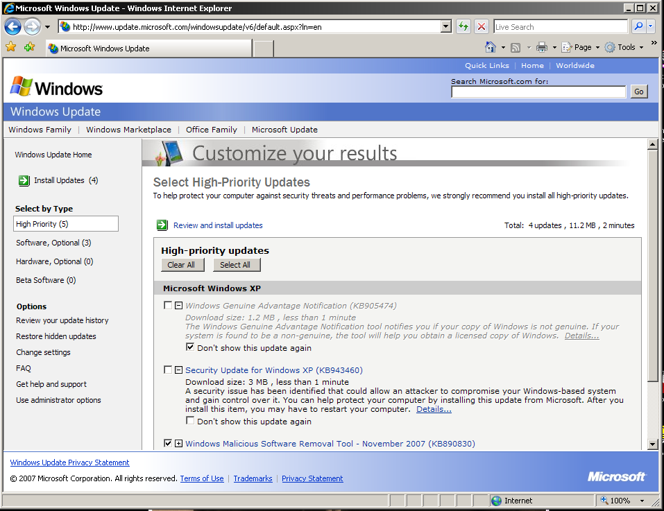 resil sem to za posledni dny asi sestkrat, vzdycky tam byl bud ten czech language pack nebo nejaky hotfik pro NET framework... at uz tam mas jedno nebo druhe, odeber to, nainstaluj net FRamework 1.1 Service Pack1 z odkazu vyse a potom Ti to pujde stahnout a nainstalovat a uz nebude otravovat