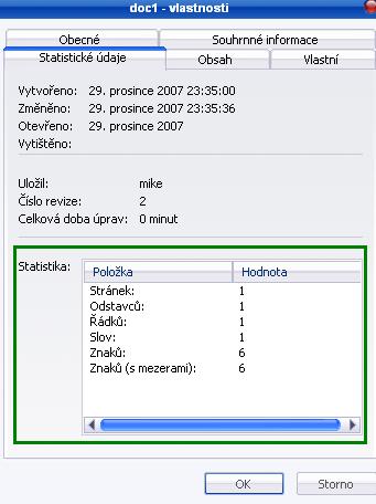 Když kontrolovat, tak pořádně. Úbytek pár kb nic neznamená. Opiš si údaje ze statistiky přímo ve wordu. Otevři dokument a v menu vyber : Soubor --> Vlastnosti --> záložka Statistické údaje. Dole je okno s údaji kolik stránek/odstavců/řádků/slov/znaků obsahuje dokument ( viz přilozený obrázek). Toto si zapiš a později zkontroluj.