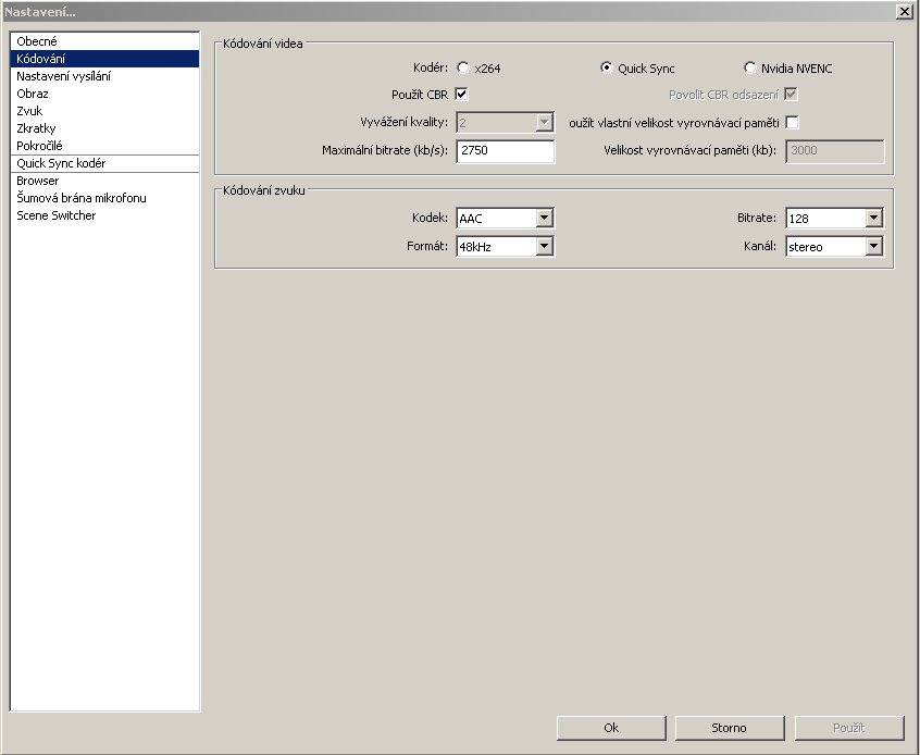 Tady máš moje settings s tím quicksyncem , btw https://obsproject.com/forum/resources/ ... cksync.82/ tady máš guide, kdyžtak se mě zeptej pokud bys něco nevěděl, hrál jsem si s tím fakt dlouho než jsem to zprovoznil.