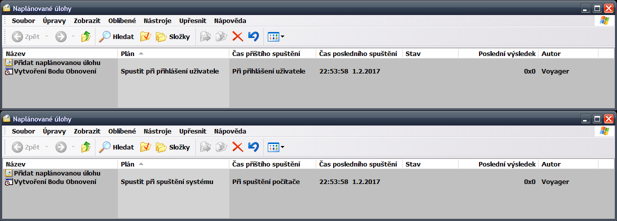 Re: Bod obnovení a naplánovaná úloha Vyřešeno