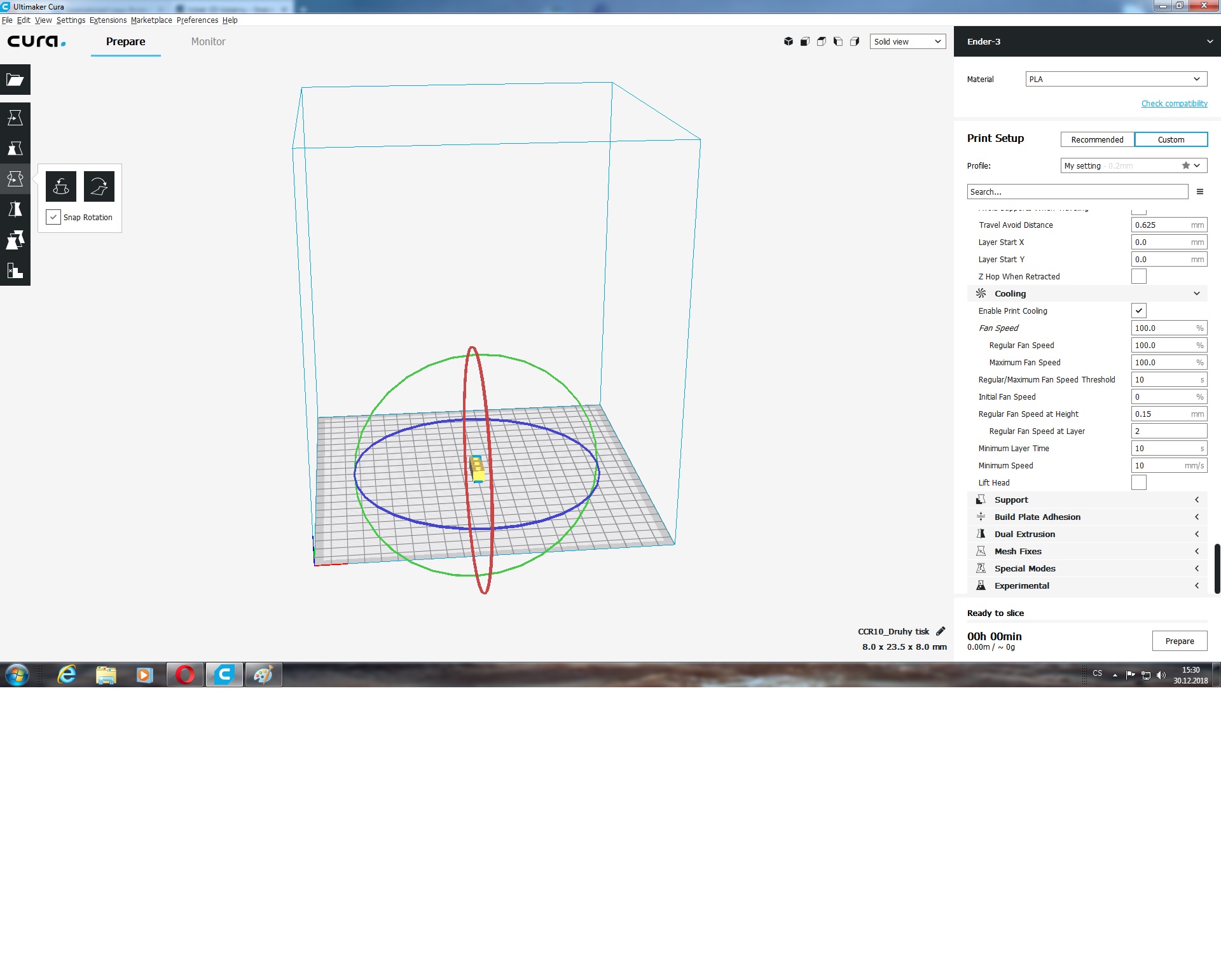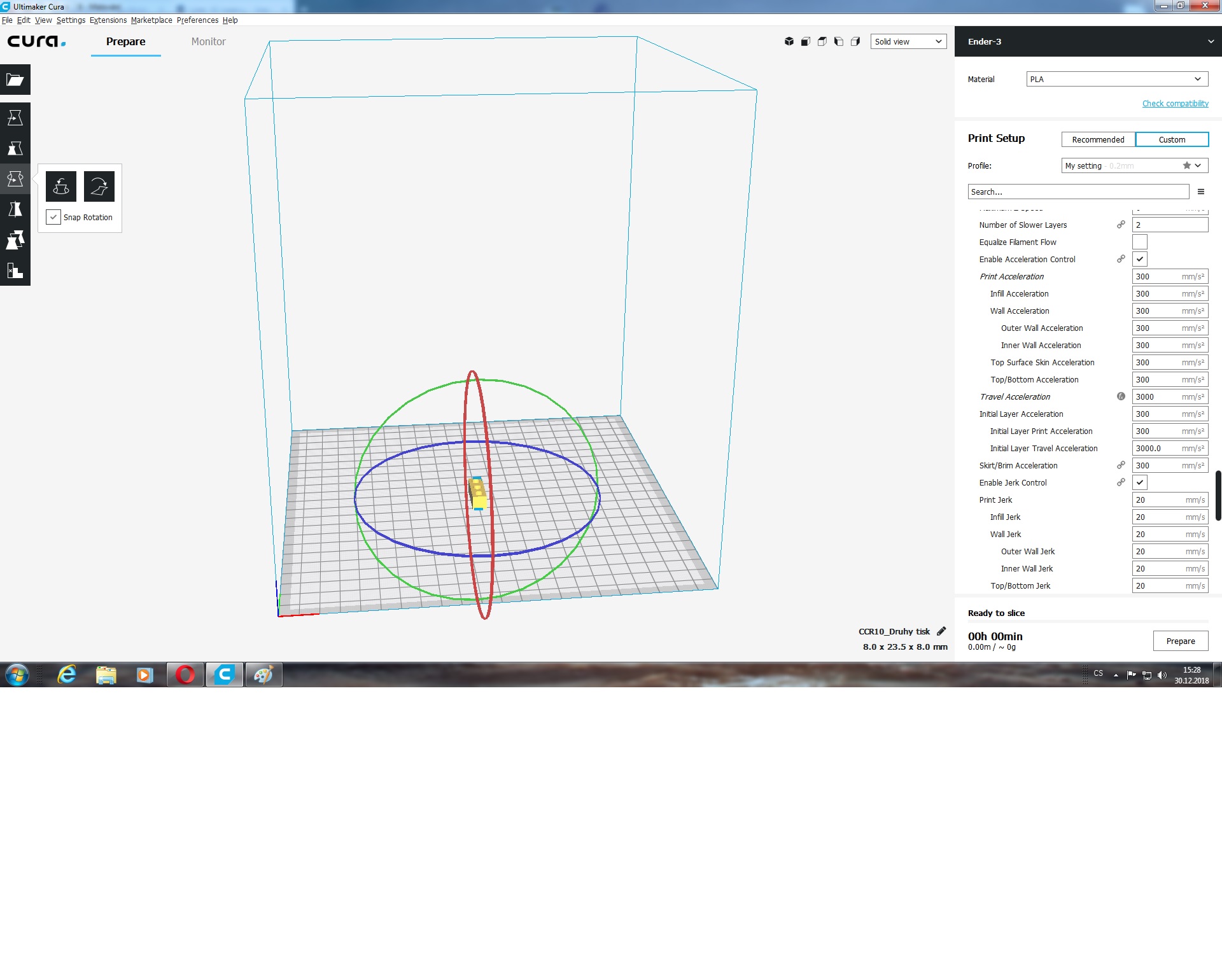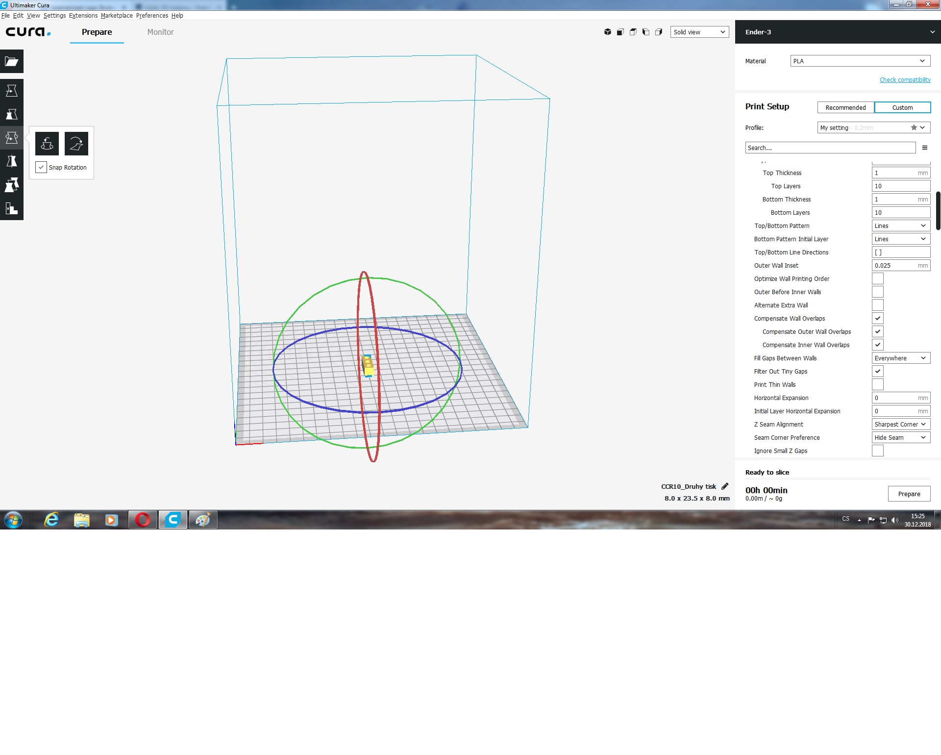 Je to dobré, díry jsou již krásně kulaté. Ještě bych měl otázku, čím se nastavuje funkce, kdy 3D tiskárna nejdřív "objede" model určený k tisknutí a teprve potom se již věnuje samotnému modelu?