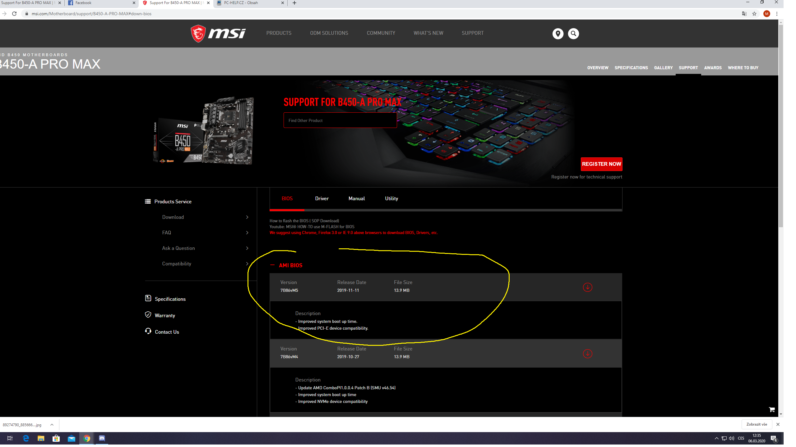 BIOS prekvapive stahnes na webu vyrobce zakladni desky.