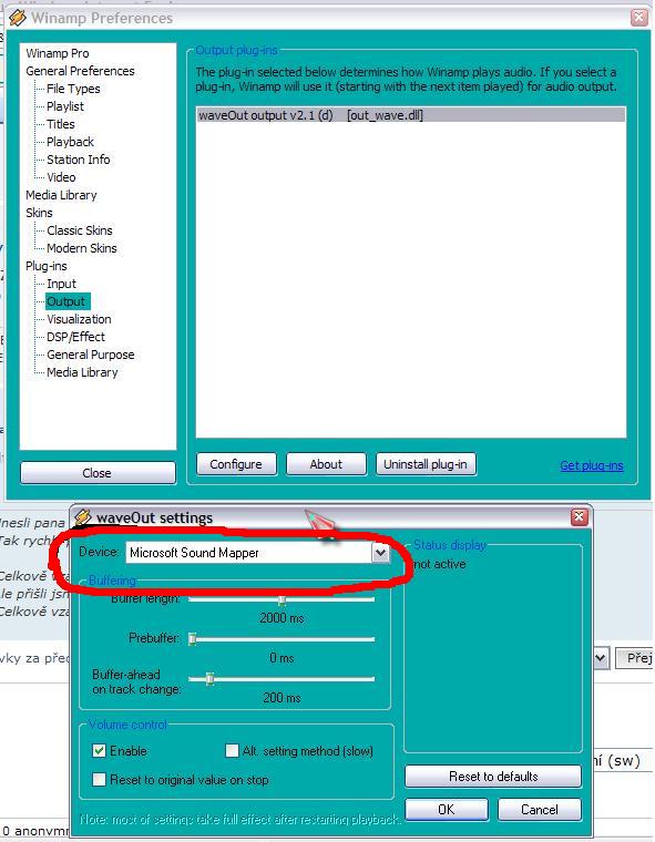 již delší dobu řeším jeden problém. Na přehrávání hudby používám Winamp (v. 5.09), ale za boha nemůžu přijít na to, proč mi hrajou jen dva postraní reproduktory. Mám repro 5.1, ve windows je vše nastaveno na 5.1 a i na zvukovce jsem to testoval. Zajímavé je, že např. ve WMP mi to hraje normálně. stejně tak při přehrávání DVD v PowerDVD vše běhá, jak má. Prostě jen v tom winampu mi to blbne. Nenapadá Vás, prosím, čím to je? Díky za ochotu a pomoc.