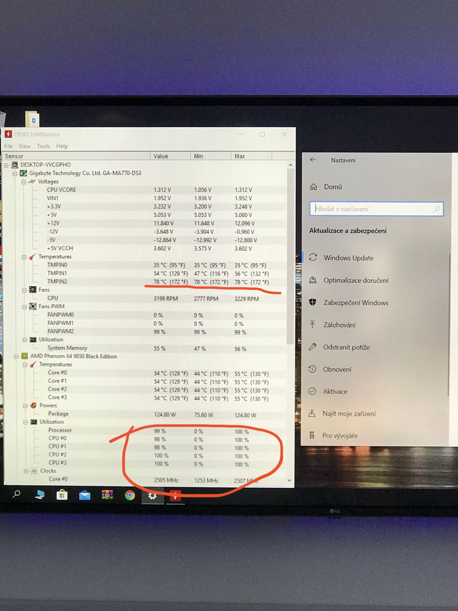 měl jsem problém se zapinanim trvalo to třeba 10 minut. počítač jsem hodil do win10 preinstalace byla bez problému, ale po dokončení se vypl. porad se nenainstalovala nejnovější aktualizace winu a počítač vypne asi u 25% instalace aktualizace. Konfiguraci pc napisu až se zapne. Teploty cajk až na jednu která má 80°C už po zapnutí pc což mi přijde moc.