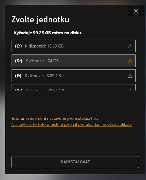 Re: Instalace her a progr. na jiný disk Vyřešeno