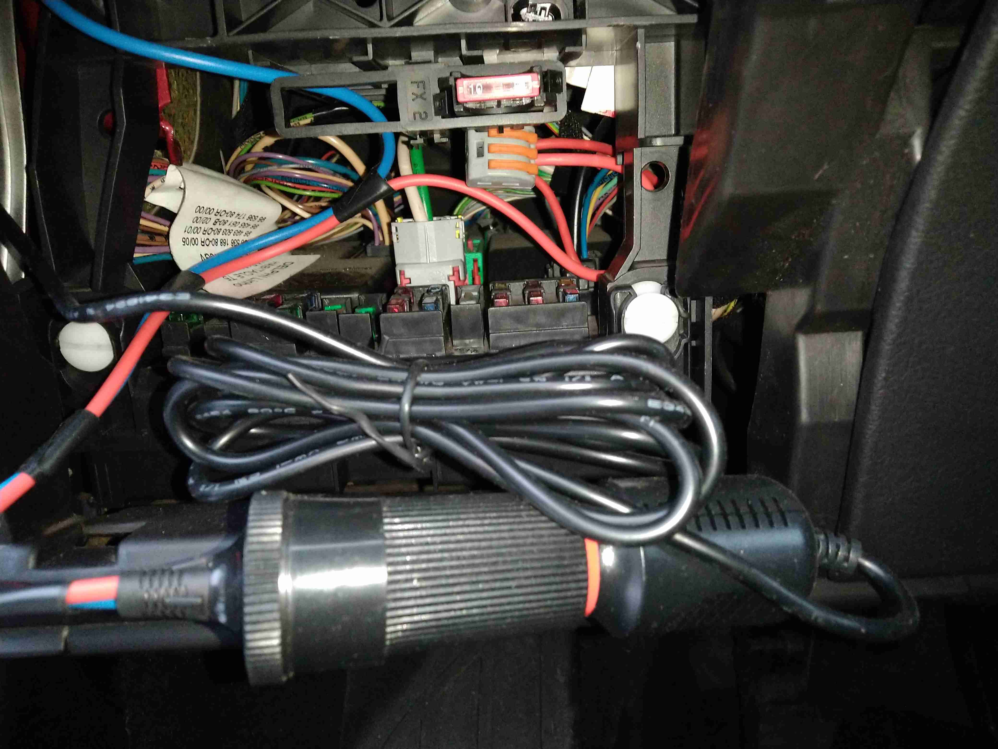 Tak udělej návštěvu u auto elektrikáře a pozeptej se kam to můžeš strčit nebo ať ti to udělá.Já u mého pežouta vyvedl proud z bsi desky a otázka cca. 150 kč.Wago svorka,kousek drátu a samice zásuvky.Mechanik našel pouze kam to můžu připojit po otočení klíčku a zbytek jsem si zbastlil sám.