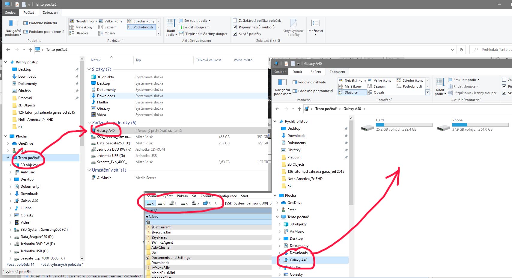Ve Win10 Průzkumníkovi se Samsung objeví a zobrazí obsah telefonu i sd karty - viz screen. Jak to mohu spřístupnit i v TC?