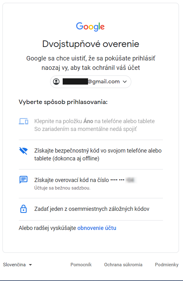 Nicméně když jsem vyhledával "jak se přihlásit ke google účtu na telefonu, když nemohu potvrdit na starém", tato diskuze mi vyjela docela nahoře, tak kdyby někdo měl taky takový problém, tak řešením je vypnout dvoufázově ověření.