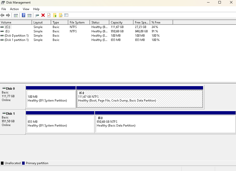 Dobrý den, zhruba před 8mi rokama jsem si rozdělil hard disk na dva oddíly (100 gb a 900gb. proč? To už sám nevím) přes program Macrium reflect. A teď jsem se je snažil sloučit ale neudělal jsem si backup a ani druhý program AOMEI Partition Assistant mi nedovolí je sloučit. Tak jsem disk C (100gb kde je systém win11) naklonoval na ten druhý disk ale v Biosu se sice ukáží ty dva disky ale neuloží se změna v Bootu. Co z tím?