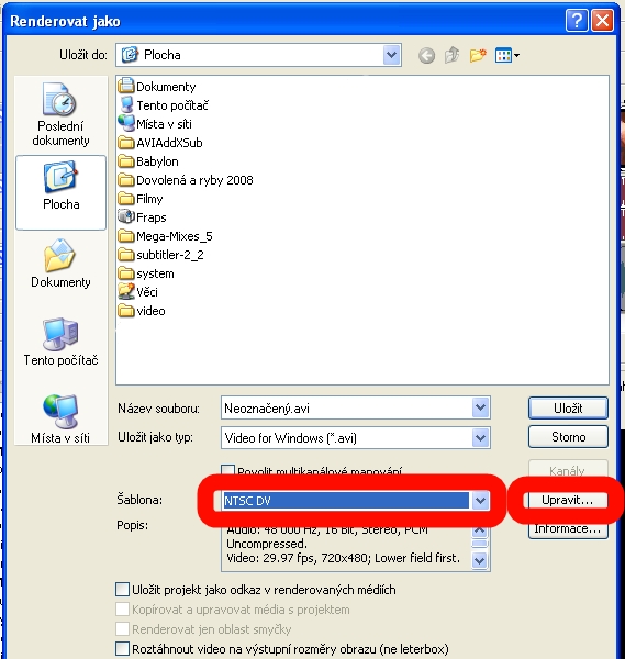 Ale hlavně použij kompresi, jinak to budeš mít pořád strašně velké. Nevím jaké komprese umí používat Sony Vegas (používám Virtual Dub), ale stačí si s tím trochu pohrát.