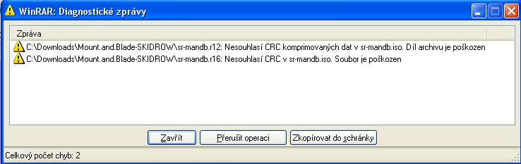 problem je nasledujici: Stahl jsem si hru z netu a rozbalil normalne ve winraru. A pak jsem dal ISO soubor do deamona a nainstaloval a hral . Pak jsem chtel do hry nainstalovat cestinu a hra se mi pokazila tudiz jsem byl nucen hru odinstalovat. Jelikoz jsem stazene soubory smazal tak jsem hru stahl znova. Stahl sem ji a chtel rozbalit. Ale zde je problem. Stahl jsem si uplne stejny torrent jako predtim a v poho. TEd ten novy si chci rozbalit ve winraru a pise to chybu. Ta je na obrazku....