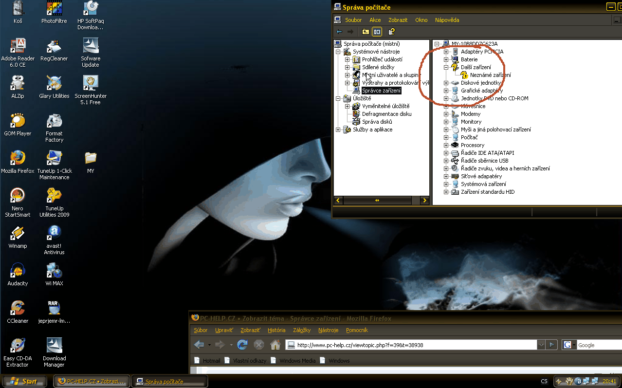 Zdravím... mám windows Xp SP 3... ve správci zařízení mi to hlásí ... žlutý ? který když rozklepnu je tam ! a pod ním je napsáno že tam mám neznámé zařízení... aktualizace , nebo ovladače atd když dám třeba i hledat na internetu, tak nic nenajde... nevím co by to mohlo být ...