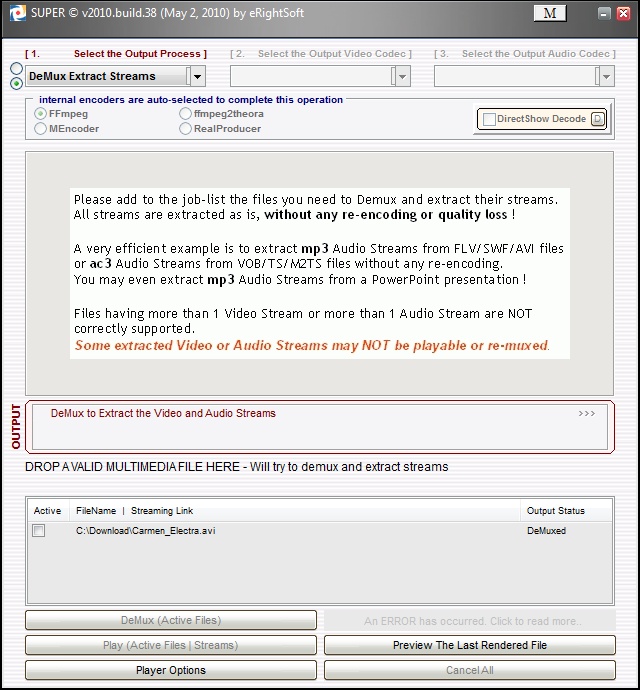 Jak jsem psal-přepni tu zelenou tečku-nastav-přetáhni video do spodního pole-demux.